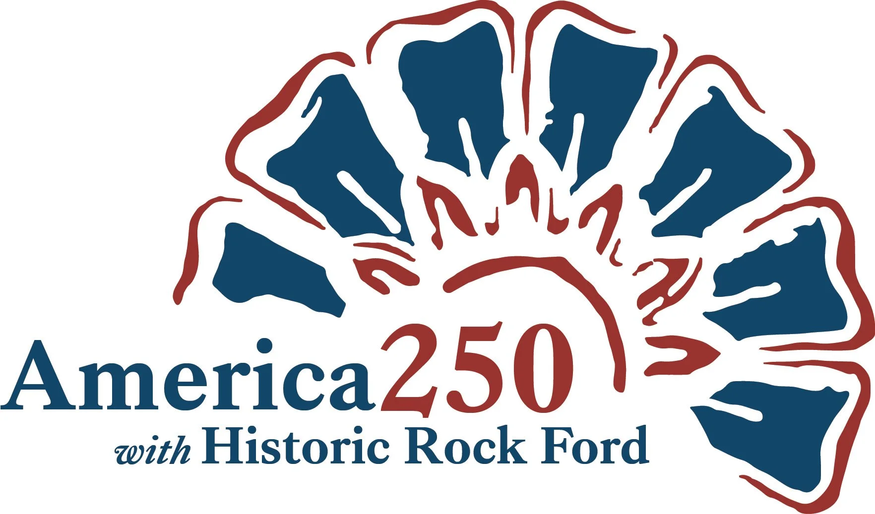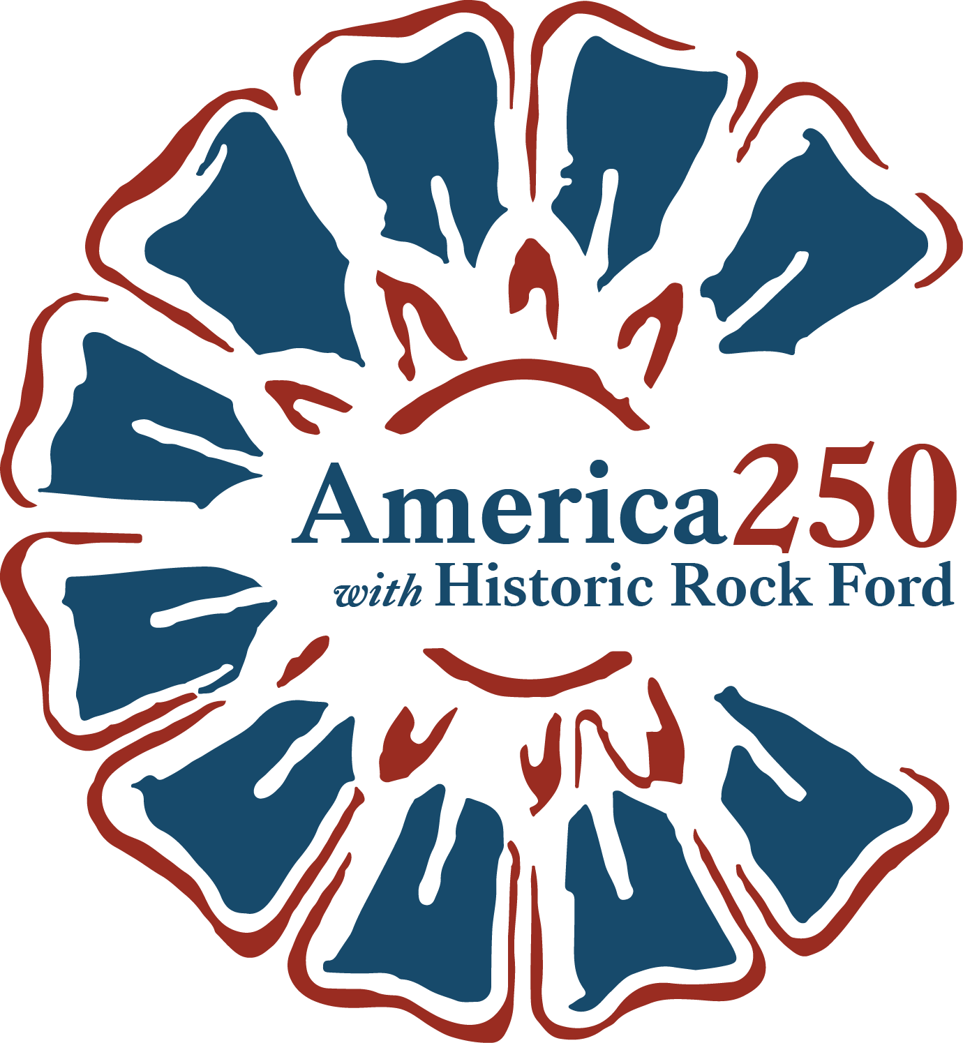 Inspired by the Lancaster rosette featured in Historic Rock Ford’s logo, visually tying the organization’s identity to its America250 celebration.