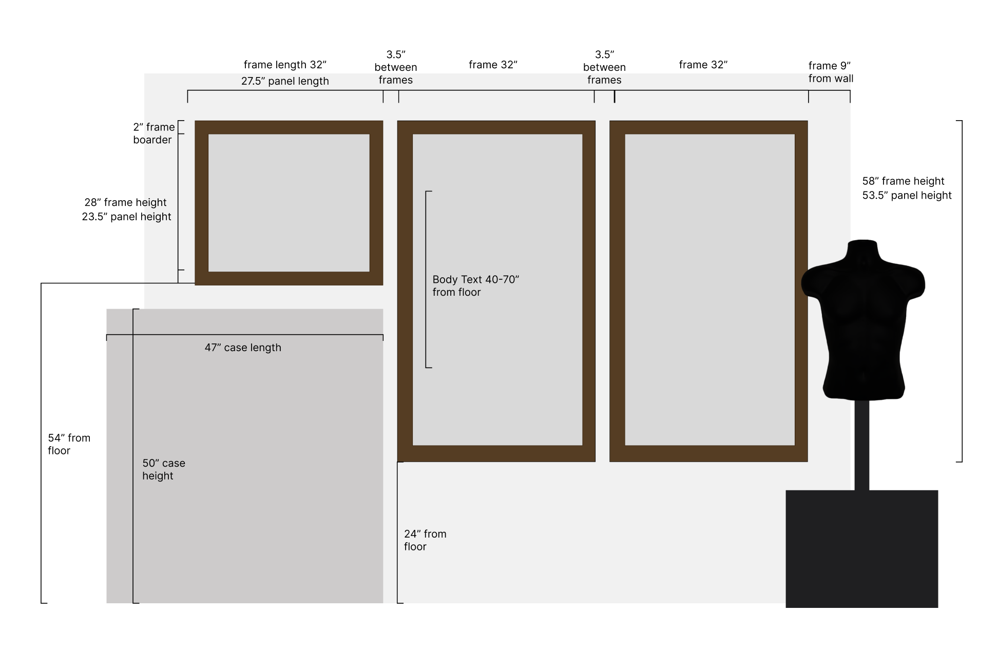 Mockups allowed me to test how the sections and elements worked together within the exhibit space, ensuring the narrative, design details, and historical references were cohesive and readable.
