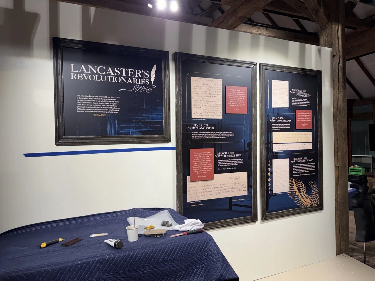 Inspired by Edward Hand’s handwritten initials from his letters, tying the Lancaster’s Revolutionaries exhibit identity to the personal documents at the heart of the story.
