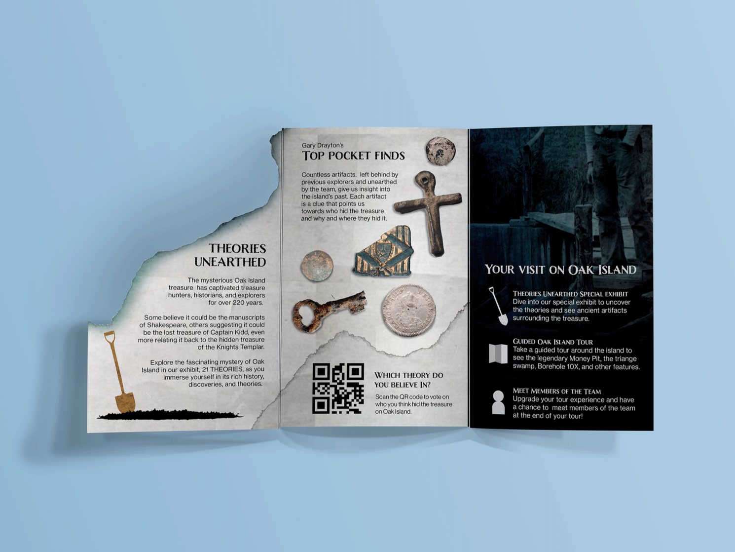 Theories Unearthed is a full visitor-centered experience designed for Nova Scotia’s Oak Island Visitor Center.