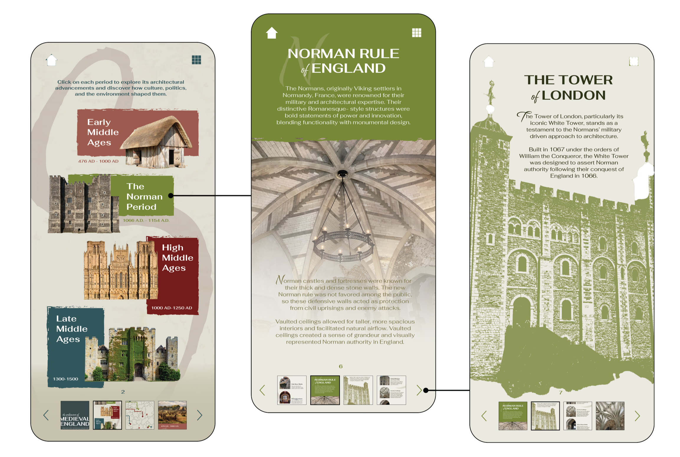 The Stone Path is a self-guided tour of medieval England across multiple sites. Visitors start by learning about each era’s architecture, choose a site and review visitor info, and then use the guide on-site to spot the key features.